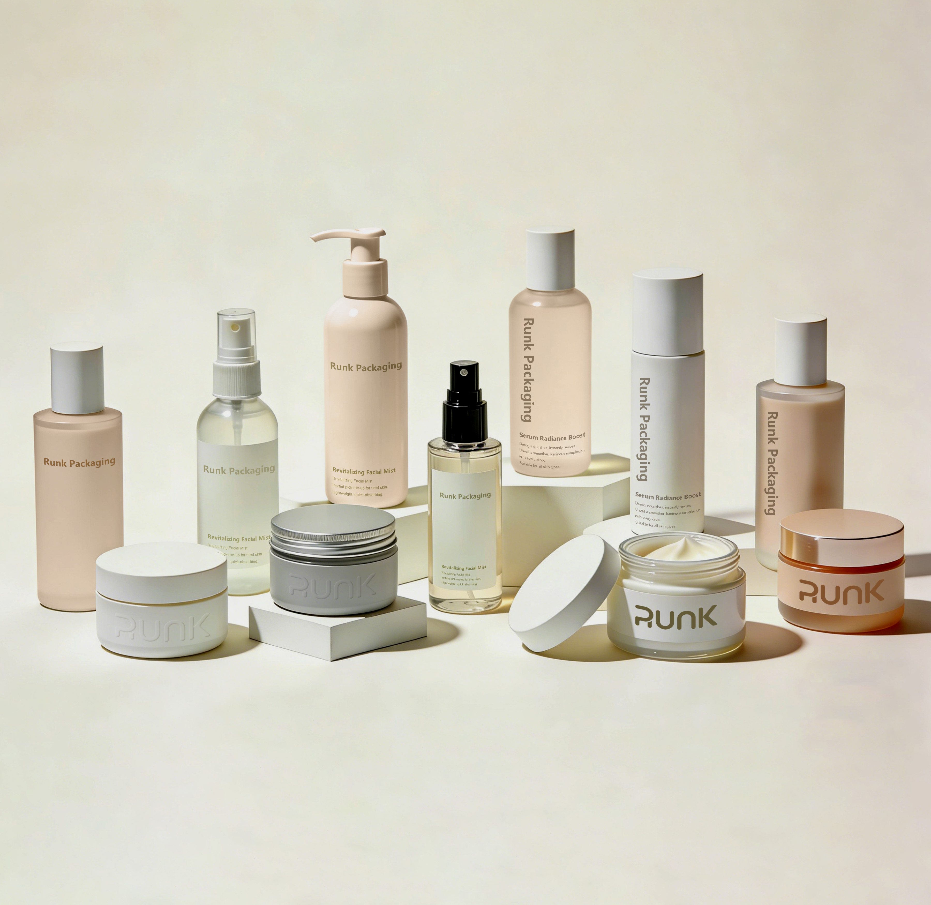 At Runk, we specialize in providing professional cosmetic packaging bottle solutions for skincare and beauty brands worldwide—delivering reliable performance, flexible customization, and future-ready packaging innovation.